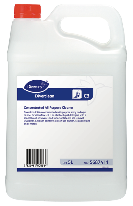 Diverclean C3 Multipurpose hard surface cleaner for walls, floors, etc. with excellent degreasing and cleaning power. It is an alkaline based detergent with a special blend of solvents and surfactants to aid soil removal.