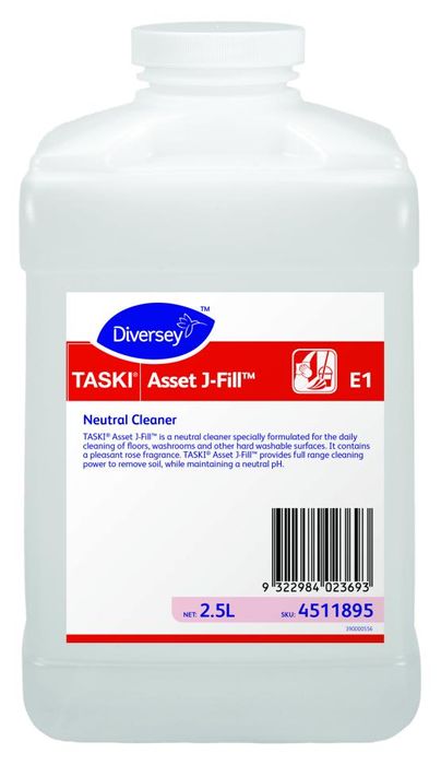 Asset JF is a unique blend of ingredients working together for excellent cleaning efficiency on any washable surface. Asset JF provides full range cleaning power to remove soil, while maintaining a neutral pH. Asset JF when used diluted through a Diversey dispensing system is effective for cleaning all washable surfaces.