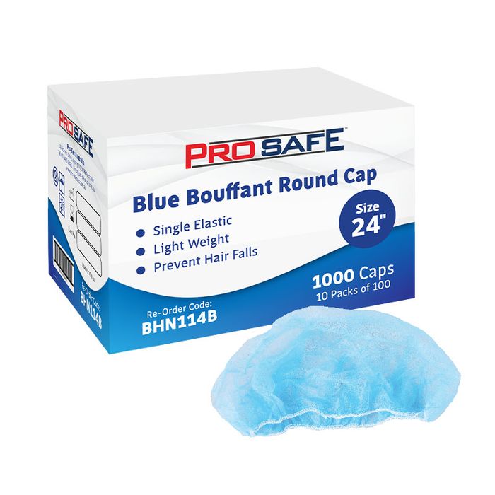 ProSafe 24" Bouffant Round Hair Net Cap Blue