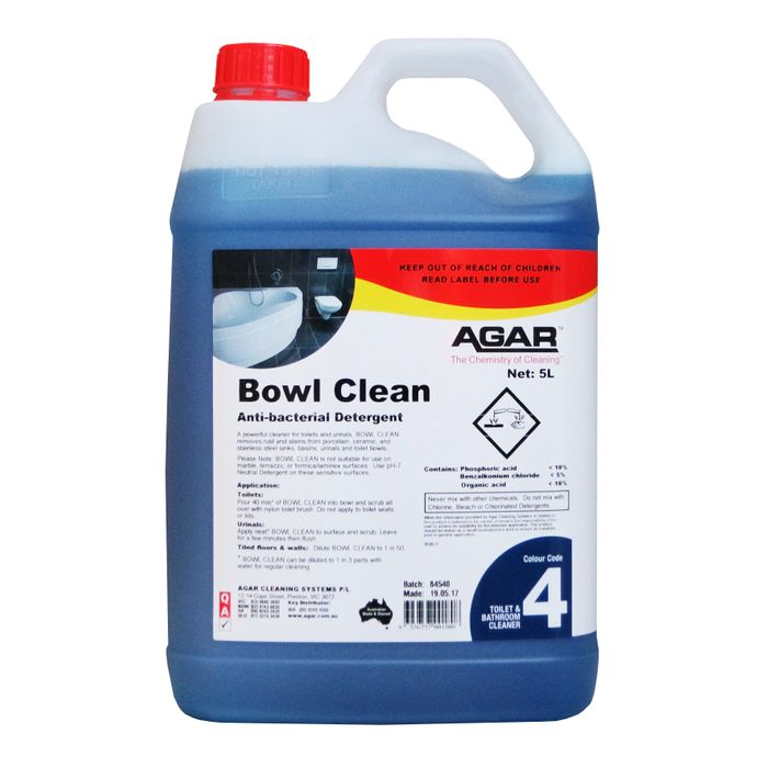 A powerful, antibacterial cleaner for toilets and urinals, BOWL CLEAN removes watermarks and stains from porcelain, ceramic and stainless steel sinks, basins, urinals and toilet bowls.