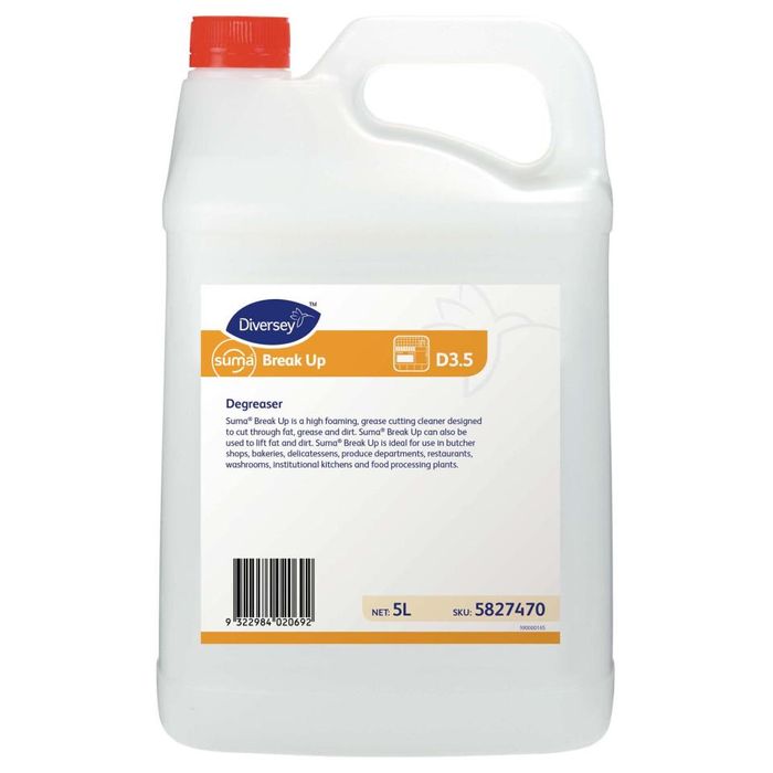 The Diversey™ Break Up is a high foaming, heavy duty degreaser for removal of grease, animal fat and dirt.