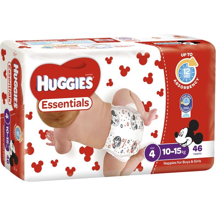 Huggies Essentials Toddler Nappies 4 x 46's - Size 4 (10 - 15kg)