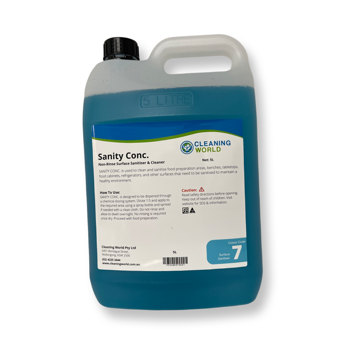 Cleaning World Sanity Conc. 5L - Non-Rinse Surface Sanitiser & Cleaner Concentrate