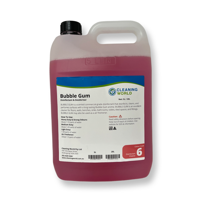 Choose Cleaning World Bubble Gum 5L today and experience the power of a commercial-grade disinfectant that not only cleans and disinfects but also perfumes your space with a delightful Bubble Gum aroma. Our product ensures a clean and fresh environment that is not only hygienic but also pleasant to be in.